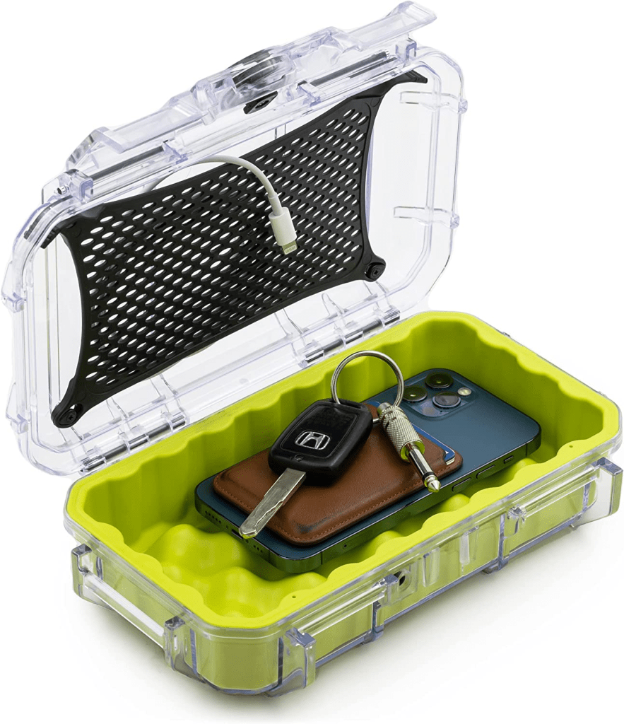 One extra item, that I wouldn’t say is a necessity, but a preference of mine is to have a dry case. Dry bags are a go-to if you’re going to the beach, water park, etc., but I feel more secure having everything in a dry box. Here is what we use to carry our ID’s/passports, phones, cash, etc. It’s a key lock, made in the USA, and you can take this anywhere.